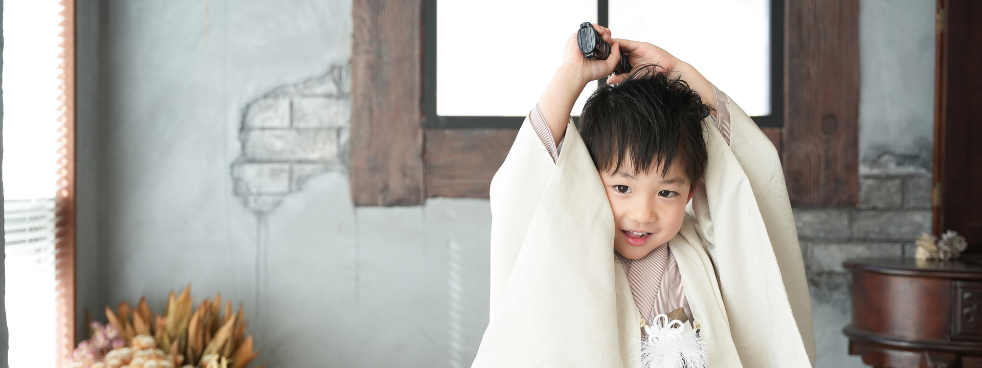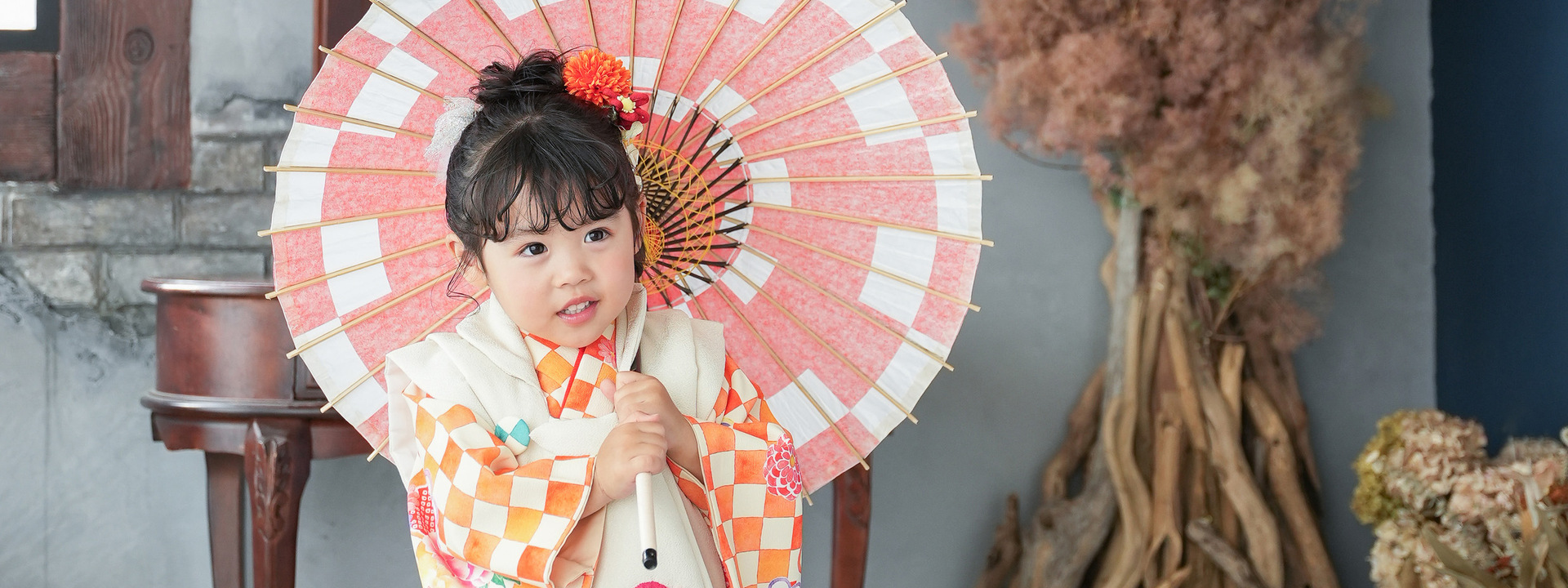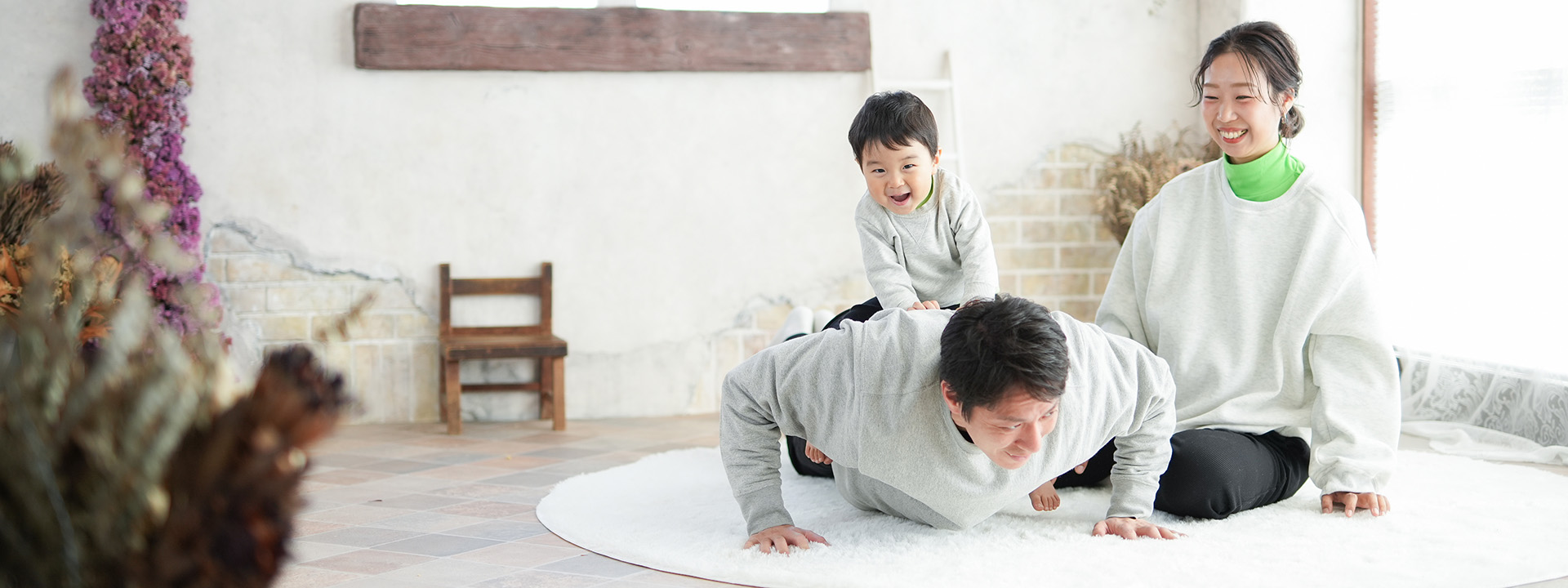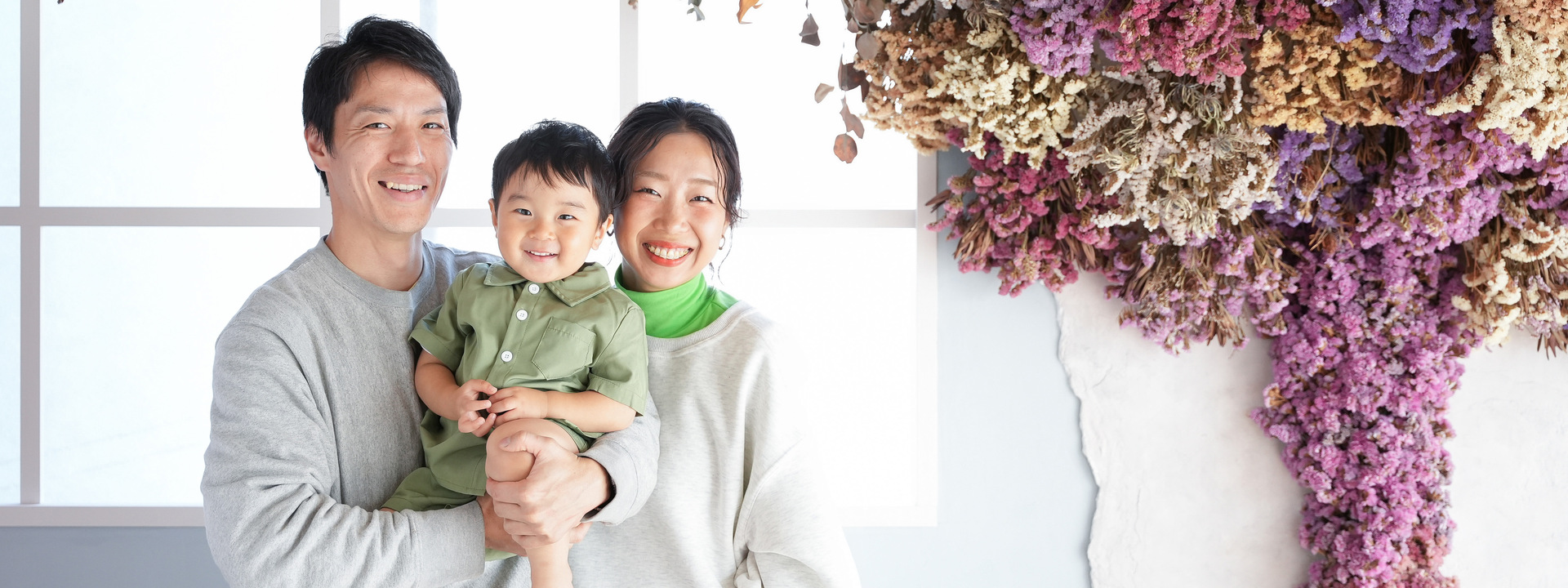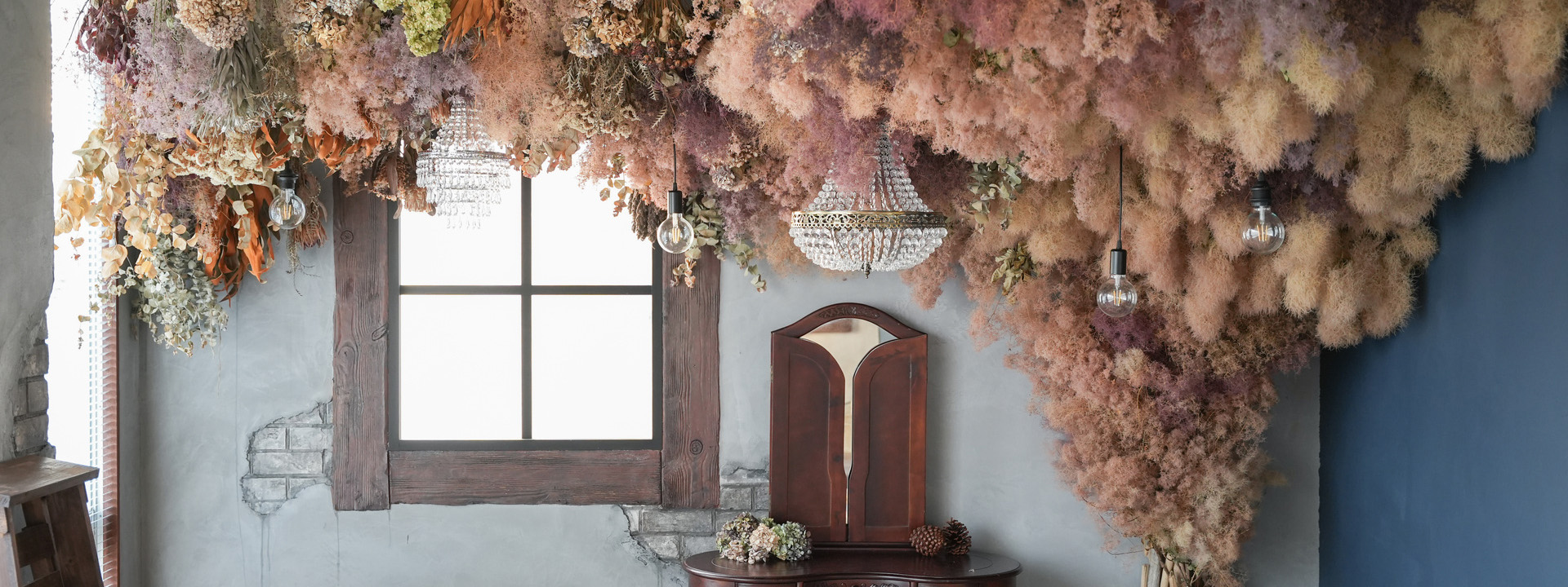 大きな窓から差し込むたくさんの自然光とたっぷりのドライフラワーでナチュラルでかわいい写真が撮影できます。