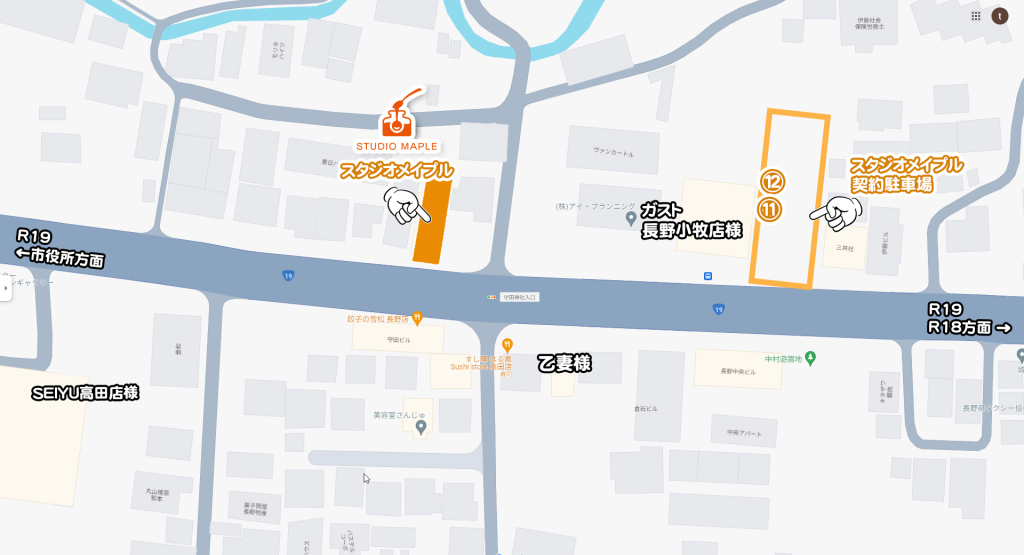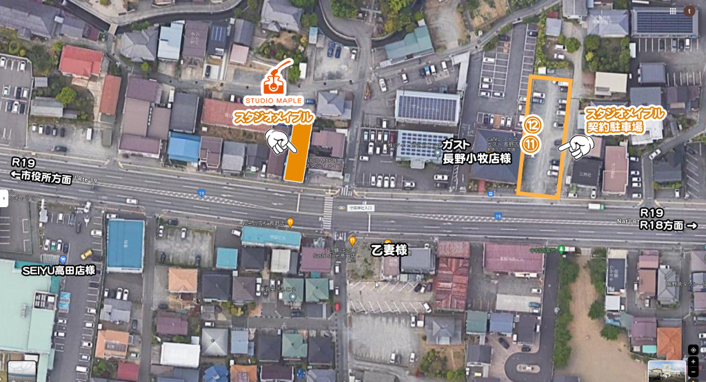 駐車場のご案内 2024.07.042024.06.25 駐車場はガスト長野小牧店様の隣に2台分ございます。11番、12番が契約駐車場になりますので他の部分への駐車はご遠慮ください。事情により車の台数が増える場合は近隣の駐車場をご利用ください。駐車場での盗難、トラブル等に関して当方では責任を負いかねます。
